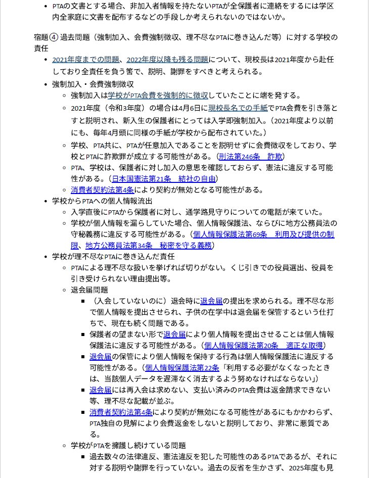 - 宿題④ 過去問題(強制加入、会費強制徴収、理不尽なPTAに巻き込んだ等)に対する学校の責任